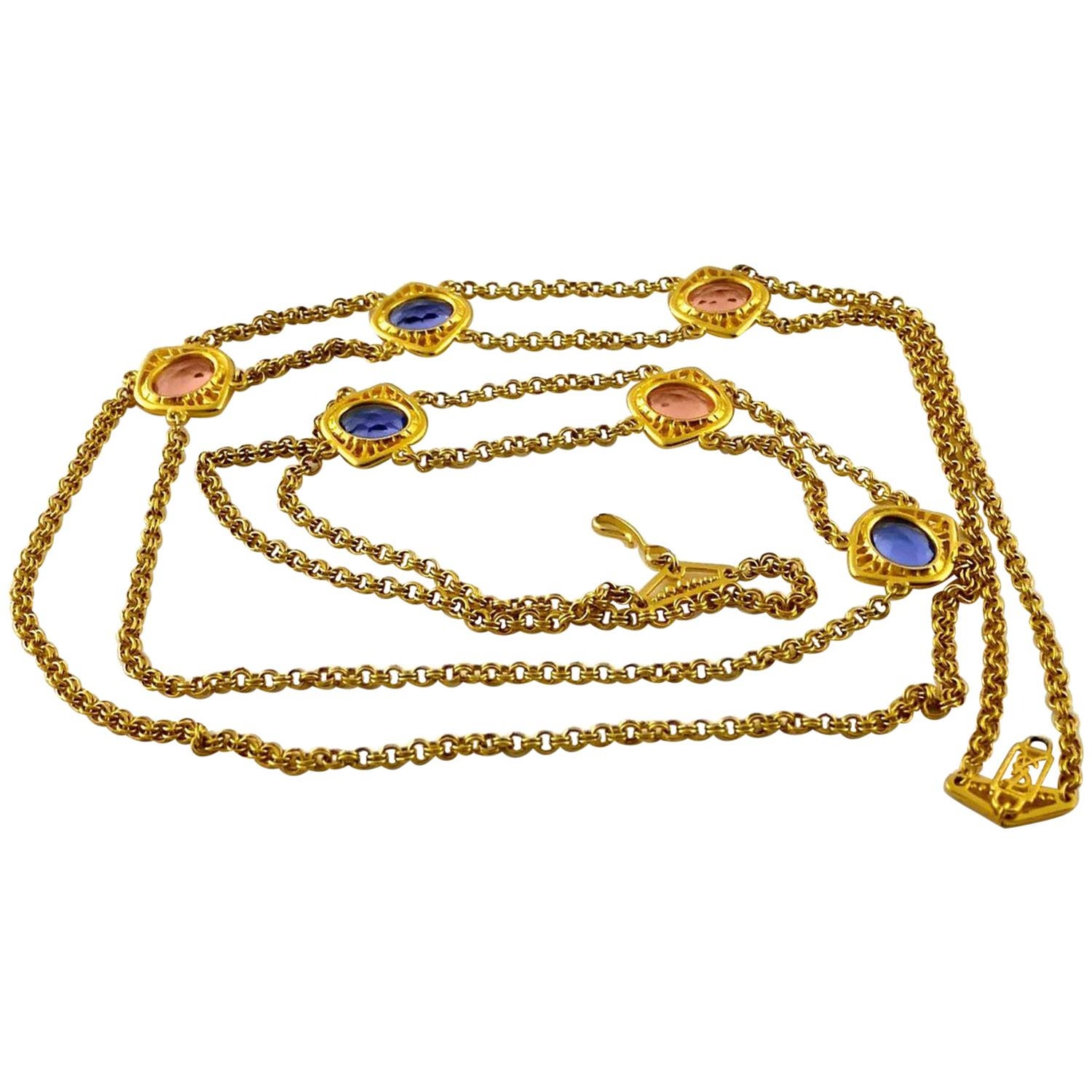Vintage Ysl Yves Saint Laurent Coloured Glass Stones Multi Layer Chain Long Neck For Sale At 1stdibs
