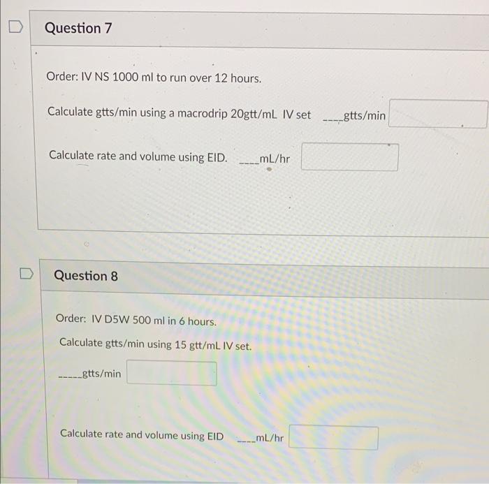 Solved Order Iv Ns 1000ml To Run Over 12 Hours Calculate Chegg Com